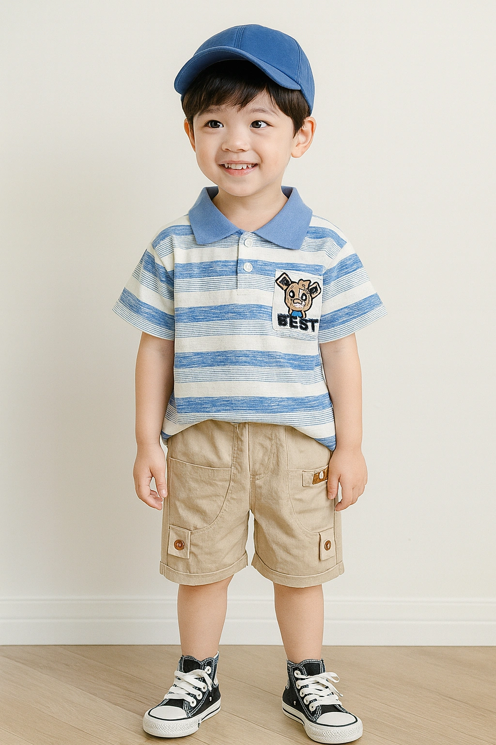 Let your little explorer shine in this polo tee featuring an adorable safari bear patch. Paired with comfy cargo-style shorts, it’s perfect for playdates and sunny outings. Made with soft, breathable fabric for all-day comfort.