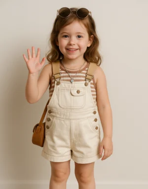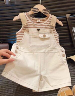 Striped Tank & Cream Dungaree Set
